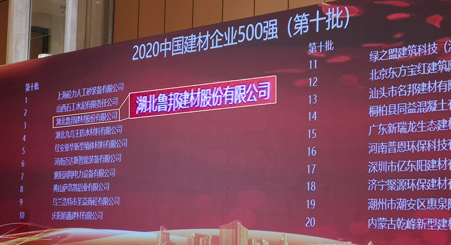 湖北魯邦建材股份有限公司榮獲“中國建材企業(yè)500強”稱號。